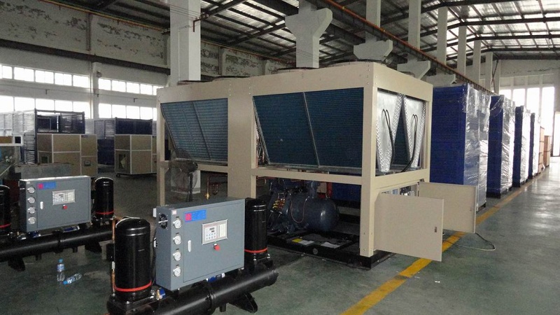 工業(yè)冷水機(jī)分類在制冷方式上可分為兩大類:風(fēng)冷式冷水機(jī)和水冷式冷水機(jī),兩者最大的區(qū)別就是冷卻方式不同,在結(jié)構(gòu)上,他們的冷凝器也不同,分別為殼管式和翅片式。水冷式冷水機(jī)必須依靠冷卻水塔工作,風(fēng)冷式的則用自身自帶的風(fēng)扇進(jìn)行冷卻,對環(huán)境有所要求:例如通風(fēng),濕度,溫度不能高40°C,空氣酸堿值等等。在技術(shù)上,水冷比風(fēng)冷能效比要高出300~500kcal/h;在價格上,水冷要比風(fēng)冷低得多。