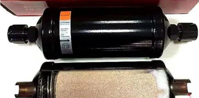 我們用干燥過濾器清除制冷劑中的這些異物,確保系統更有效地工作。干燥過濾器的作用是防止制冷系統吸入有害物質。可以清除制冷劑中的水分,從而防止膨脹閥 的流口上結冰。它還能清除其他固體污染物、腐蝕物和酸。能清除異物顆粒,最大限度防止系統中發生 化學反應。