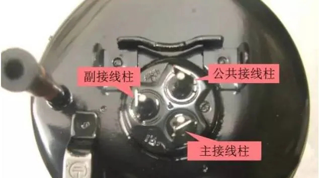 萬用表的歐姆檔(一般200歐姆的檔位)測量每兩點之間的電阻值,阻值大的兩點(BC)為啟動和運轉繞組。剩的那個點(A)是公共點。然后把所測量的兩個點(BC)再分別跟公共端連接,阻值較大的是啟動繞組,小的為運轉繞組。三點之間阻值關系為:BC=AB+AC