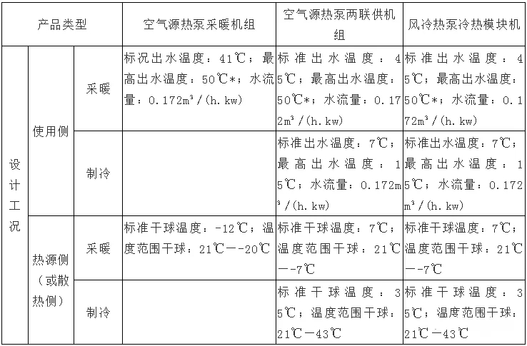 其實,對于空氣源熱泵兩聯供機組來說現在市場上一般會按使用區域不同分為低溫機和常溫機,低溫機也參照GB/T25127.1GB/T25127.2常溫機參照表中所列。