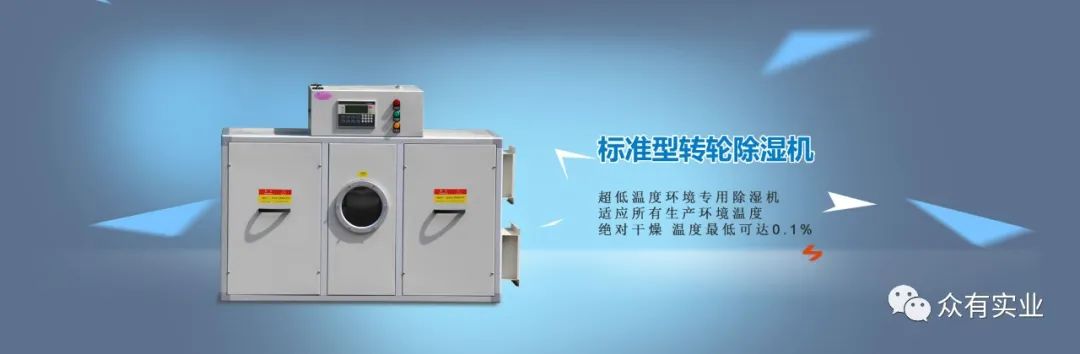 ⑸除濕機(jī)的選型:用一般空調(diào)壓縮機(jī)的冷凍除濕法只能把空氣露點(diǎn)溫度降至10℃,而此軟膠囊干燥室內(nèi)的露點(diǎn)溫度要求達(dá)到1℃以下,故用一般冷凍除濕法根本無法達(dá)到生產(chǎn)工藝要求。而采用空調(diào)制冷加轉(zhuǎn)輪除濕機(jī)之組合機(jī)的方法可以輕易使空氣露點(diǎn)溫度降至-40℃。