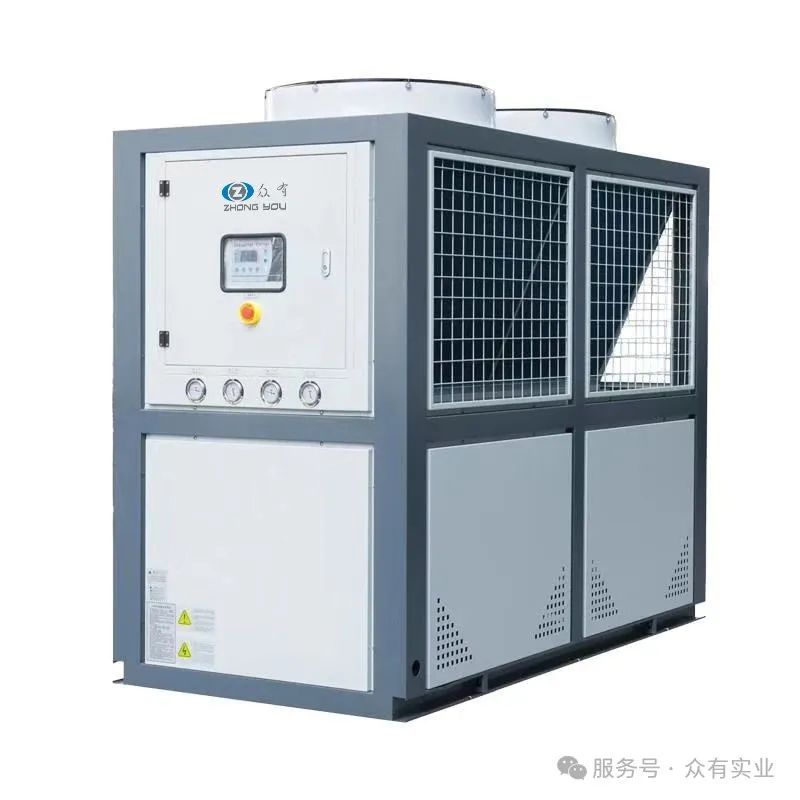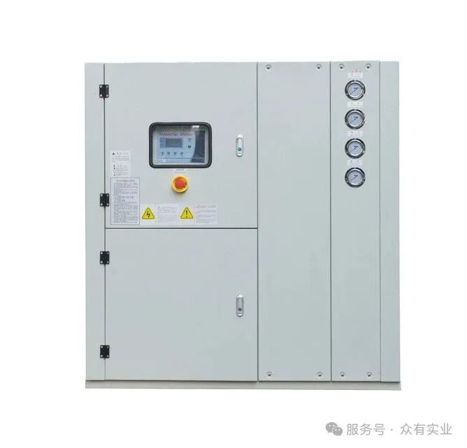 風冷式冷水機:冷水機類型的一種,將常溫的水通過冷水機的壓縮機制冷到一定的溫度以強化冷卻模具或機器,作為單機使用,散熱裝置為內(nèi)置之風扇,主要有三個相互聯(lián)系的系統(tǒng):制冷劑循環(huán)系統(tǒng)、水循環(huán)系統(tǒng)、電器自控系統(tǒng)。